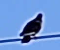 It must be a common idea that pigeons on wires resemble notes on a five-line staff (US) or stave (UK), although urban power cables usually come in groups of four – three phases and neutral, instead of five which is needed for a regular staff, but I though why not try it out.